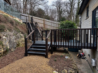 Various levels of the garden are now much more accessible thanks to the oak sleeper steps, bespoke composite staircases, and natural stone pathways. All of which add a unique character to whole premises.
